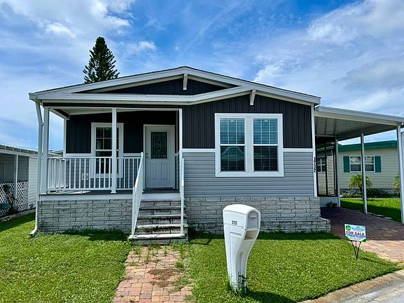 Built in 2019, this beautifully maintained 2-bedroom, 2-bath home combines comfort and style with a bright, airy design. The screened porch and cathedral ceilings make the living spaces feel open and inviting, while large windows fill the home with natural light. Outside, a paver driveway leads to a private screened lanai-an ideal spot to unwind and enjoy the Florida lifestyle. The kitchen is equipped with matching Whirlpool appliances, generous cabinet storage, and plenty of counter space, opening directly to the living area for easy entertaining. The main bedroom is generously sized, easily fitting a king set, and features its own en suite bathroom for privacy. For added convenience, the home also includes a Maytag washer and dryer tucked inside. Located in Winward Lakes, a gated and pet-friendly 55+ community in South Tampa, residents enjoy top-notch amenities such as a heated pool and fitness center. The land lease is $839 per month, and the community is conveniently close to shopping, restaurants, medical facilities, major retailers, and the Crosstown Expressway. Affordable, well-maintained, and ideally located-this home offers the best of Florida living. Come see it today! While all information is considered reliable, we encourage prospective buyers to conduct their own personal inspections for a comprehensive understanding of the property's condition and measurements. Please note that American Mobile Home Sales of Tampa Bay Inc. cannot guarantee the accuracy of this information. As a buyer, you will be responsible for all closing costs, sales tax, and title transfer fees associated with the purchase. The buyer assumes full responsibility for obtaining all current rates for lot rent, fees, and any pass-on costs, as well as to familiarize yourself with the lease agreement and community regulations. For these details, please reach out to the community or park manager directly. American Mobile Home Sales of Tampa Bay Inc. is not responsible for quoting said fees or policies.