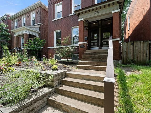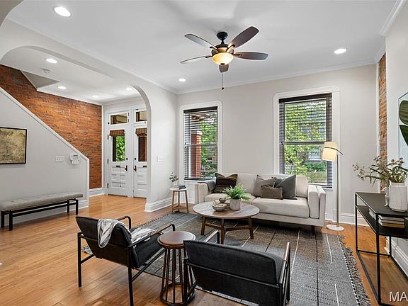 Stunning Renovation of this 3 bed/2.5 Bath Brick Former Duplex with 2,000 sq ft of living space. Step inside to a versatile open space layout with bamboo flooring, crown molding, & recessed lighting. The inviting living room features two large windows overlooking the landscaped front yard and flows seamlessly into a lovely dining area. The rear family room opens to a bright and spacious kitchen, boasting granite counters, stainless appliances, a pantry, and a center island with a breakfast bar and beverage refrigerator. Walk past the hallway half bath and the convenient main floor laundry room to make your way upstairs, taking in the exposed brick wall and original stained glass window. The second floor features front office space, two spacious bedrooms with double-door closets, a hallway full bath, and a rear primary bedroom suite with an expansive walk-in closet, a private bath with a double vanity & separate bath and shower areas, & even a walkout balcony overlooking the tree-shaded rear yard. The lower level offers ample storage space and is designed to accommodate a future recreation room. The fully fenced rear yard features a two-vehicle carport for secure off-street parking. Zone HVAC for climate-controlled comfort & newer TPO Roof (2018) for peace of mind overhead are just a few of the updates you will enjoy. Centrally located just one block from the South Grand Business District and three blocks from Tower Grove Park.