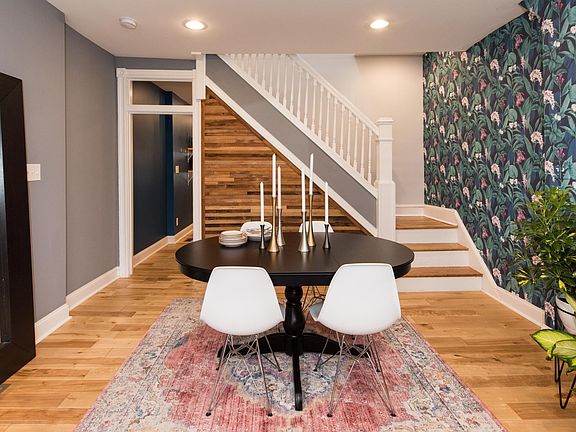 Renovated Hampden rowhouse with 2 car parking available for rent. Main living area includes shared dining room and large kitchen includes island with seating capability. Off the kitchen is a large deck with space for seating, dining, and grilling. On the second floor are two large bedrooms and two full baths, one for each room. Main bedroom also has large walk in closet. Laundry is located on the second floor. Finished basement with high ceilings includes another bedroom and full bathroom as well as living area. Small study at the front of the basement can be used for an office or workspace. Covered front porch has space for small table and chairs and people watching all along Elm Ave. House is conveniently located 2 blocks from the Avenue and 2 blocks from the Rotunda. Owner pays for water, renter is responsible for other utilities. Pets are allowed with non-refundable pet deposit.
