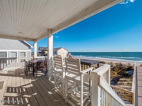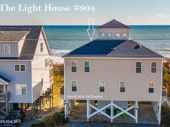 Oceanfront 4 BR Duplex with rentals booked for the upcoming season. Right in time for summer this duplex is ideal for rental income and personal use as desired. Offer furnished with all appliances included. Driveway and underhouse parking for numerous vehicles. Two covered decks offer the perfect shady place to enjoy the gorgeous ocean views and constant breezes. Enclosed outdoor shower and separate rinse area for easy cleanup after a day on the beach. Inside the house you will love the top floor with open kitchen/dining/LR and a wall of windows providing awesome ocean views. One BR on the top floor has access to a full bath. The lower floor contains 3 BR's including the master with ensuite bath and a door to the covered porch. Two guest BR's share another full bath. The top floor features a special retreat with a widows peak lookout room with expansive views of the ocean and marsh. Daybed provides a perfect spot for a nap or a lazy afternoon with a good book!