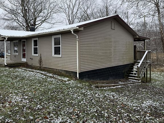 Home features open living, dining and kitchen area to maximize space. Attractive wood floors throughout the main living area. 3 bedrooms and 1 bath with tub/shower. Kitchen features tile back splash, breakfast bar, wood cabinets, and easy access to the large, covered back deck for those summer barbecues! Convenient laundry closet just off kitchen. Covered front porch. Large storage building. Less than 30 minutes from London/I-75—great for the commuter. High speed (fiber optic broadband) internet available. Bank owned, Sold As Is. Condition of electrical, plumbing, HVAC, septic, and all other house systems unknown.
