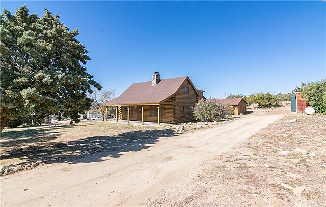 Large Custom Two bed/Two bath Log Home on 2.3 acres of country living. Lodge Pole Pine and Spruce were used to build this one of a kind Home. Less than 1 mile from the K-12 school, 3 miles from town and 15 minutes to the Cahuilla Casino. This home boasts new vinyl flooring and carpet through out, vaulted ceilings in Living Room with a River Rock Fireplace to keep warm on the Snowy winter nights. An Eat in Kitchen with New Granite Counter Tops and plenty of cabinet space, as well as a sweeping Valley View. Down the hallway you will find the washer and dryer hookups, Master Bathroom with a new 42" Granite top vanity with matching mirror, then to the Master Bedroom with new ceiling fan and light. Upstairs there is a huge open loft that could easily be turned into a 3rd bedroom or office. You will also find the second bathroom with tub and the second bedroom. Outside there is a Detached 3 car garage/workshop, along with another separate barn/shed. Bring your tools and toys there is plenty of room. House uses propane gas & has 2 holding water tanks. The well is brand new, and putting out water as fast as you can use it (80 Gal Per Minute), so bring your FHA or VA loans!