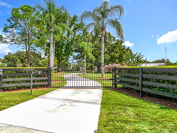 This stunning custom-built lakefront estate presents a rare opportunity to embrace resort-style living on 2.41 acres of fully fenced land with equestrian zoning. Thoughtful upgrades and distinctive amenities elevate every corner of this 3-bedroom, 2-bathroom home. The open floor plan is anchored by an expansive wall of windows that floods the living area with natural light while offering breathtaking views of Bay Lake—**an excellent lake for fishing**—along with a private dock and a custom saltwater pool and spa.