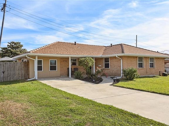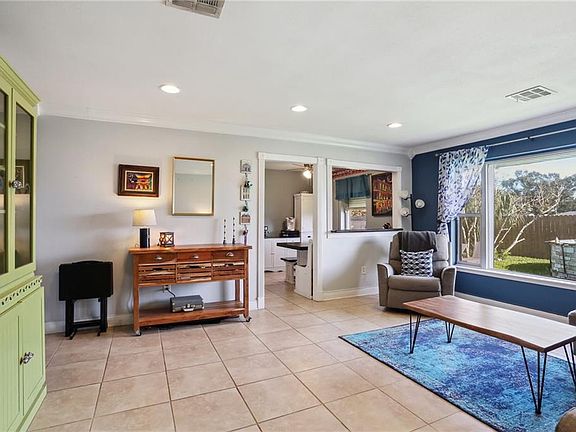 Don't miss what the adorable home has to offer. Crown molding throughout, freshly painted and no carpet. Sunroom off the kitchen with lots of natural light could be used as dinning room. New roof, new A/c and heat system. Large backyard and indoor laundry space. Don't miss this updated home that you can just move right in. Easy access to schools, shopping and I-10. Above ground pool can stay or go. Roll down hurricane shutters.