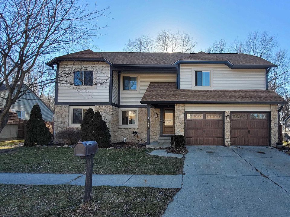 PRICE IMPROVEMENT!! OPEN HOUSE SAT 3/16/24 3-5PM. Welcome to this beautifully remodeled better-than-new home, located right in town, but sits on a cul-de-sac street with mature trees and a wooded ravine behind. Entering the home you'll notice that every surface is NEW. New paint and luxury vinyl plank flooring throughout the house. 2 story foyer and vaulted great room with stone fireplace and a wall of windows to let the sunlight flood the room. Oversized kitchen includes all new cabinetry, quartz countertops, tile backsplash, ss appliances, including a double oven and exterior vented hood. Main floor laundry is set up as a doggie room, but can be returned to laundry room easily. Separate dining room off kitchen. Finished basement gives extra living space. Upstairs are 3 beds and 2 baths. Primary suite with vaulted ceilings leads into the en-suite bathroom with walk in shower, soaking tub, double vanity, beautiful tile work, and laundry facilities (which can be moved back to main floor). Enjoy your own park-like setting outside with a ravine and private fire pit. Covered composite deck and stamped concrete patio give plenty of space to enjoy nature. New roof, gutters, windows, deck, furnace, AC, kitchen, bathrooms, all new flooring, appliance, paint