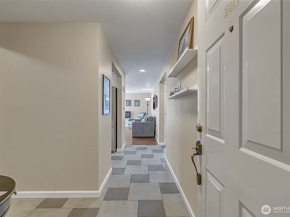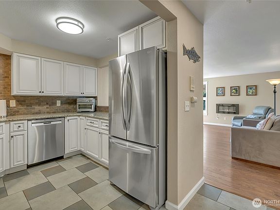 One-of-a-Kind Top-Floor, end unit Condo with Stunning Views! Experience breathtaking Mt. Rainier, territorial & city views from this rare gem in a private gated community. Completely remodeled w/high-end finishes, a designer kitchen featuring top-of-the-line cabinetry w/pull-out shelving, soft-close drawers & doors, premium stainless steel appliances (even a Bosch dishwasher, double oven, etc.), breakfast bar & granite countertops! Large windows flood the space w/natural light. Tile floors throughout the entry, kitchen, hallway & beautifully remodeled bathroom. Newer carpet & upgraded LPF. The utility room is equipped w/a full-sized washer & dryer. HUGE secure storage unit too! 2 parking spots, 1 covered, 1 uncovered + additional for guest!