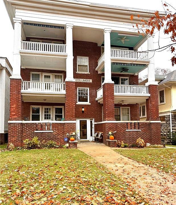 Sunny vintage charm with ALL the things! 1.5 block to 39th street corridor overflowing with restaurants, shops and entertainment and a short walk to KU! High first floor with all refinished hardwood floors, updated kitchen and bath, covered brick porch, laundry hookups, and first come first serve off street parking (usually available).This building also backs up to Roanoke park with plenty of trees, trails, pickleball and tennis courts.