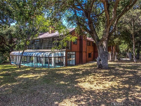 Welcome to this hidden gem perched in the hills of Yucaipa. Quiet, serene, away from city noise and traffic yet just a quick drive to everything. This wooded Mid-century Home offers complete privacy! You will not find another one like this 5 bed / 3 bath home! It retains all of its original luster with some modernizing features. A secluded, tree-lined driveway leads to your private retreat and ample parking/turnaround space at the top including a 3-car garage. Gorgeous, wood paneled double front doors lead into a stunning entry complete with a two-story cathedral ceiling and mid-century stairway centerpiece. The sunken living room features floor to ceiling windows that bathe the home in natural light. Following the hallway into the heart of the home gives way to a guest bedroom and recently remodeled guest bath complete with new tile flooring, pedestal sink, and walk in tile shower. The family room beckons through the hallway with it's cozy fireplace and custom stained glass window. The kitchen charms with original features including a 5-burner stovetop and retractable fan, original solid wood cabinetry, dual ovens, and an expansive walk-in pantry. The massive back sunroom is completely enclosed with glass panels and allows full immersion in the surrounding lawn and garden with the vibrant colors of Japanese Maple Trees and ancient Live Oaks. The primary suite includes a massive walk-in closet, a fully enclosed wrap around balcony overlooking the back sunroom, cathedral ceiling, and a wood burning fireplace. The ensuite bathroom features dual sinks and tons of original features including a working step-up jet tub, private toilet, and shower. All carpet is new throughout the downstairs and upstairs hallway. Additional features include safes in both the garage and primary closet, working whole-house intercom/radio, mud room/laundry room combo, multi-station sprinkler system, and multiple bonus rooms which can easily function as addition office space, dens, atriums, libraries, or even bedrooms. The lot backs up to Wildwood Canyon State Park - perfect for walking, hiking, biking, and even horseback riding. Just minutes away from Yucaipa Golf Course, Redlands shopping and dining, and Loma Linda Hospital. Dont miss this opportunity to LOVE where you LIVE!
