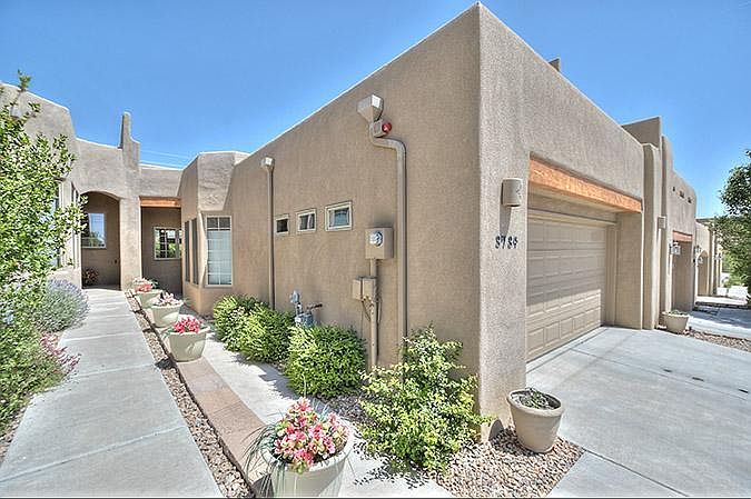 Luxuriously Appointed Foothills Townhouse featuring Pella Aluminum Clad Wood Windows and Doors providing a QUIET atmosphere, an open floorplan with 2 nicely separate & Private Bedrooms, 1.75 Baths and a Large Kitchen to satisfy the Chef in you. You’ll love the Raised Ceilings, Peninsula Fireplace, Built-In Study/Desk, Maple cabinets, Granite Counters, Stainless Appliances. The Master Suite features a Dual Vanity and Shower plus a Closet any “clothes horse” would die for (notice the loft above for seasonal storage). The second Bedroom features a beautiful built in Murphy Bed. All of this plus you’ll enjoy the Private Patio for fresh air and Sandia Mountain Views. REFRIGERATED AIR, alarm system, finished garage, washer and dryer are just the icing on the cake. NO HOA FEE