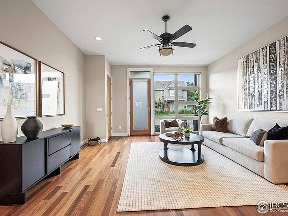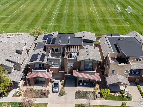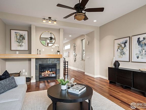 GREAT NEW PRICE! OWNER-FINANCING AVAILABLE AT A REDUCED INTEREST RATE WITH ACCEPTABLE CONTRACT AND QUALIFICATIONS!! Experience breathtaking sunrises, sunsets, and sweeping panoramic views from this exceptional luxury duplex in Northfield Commons. Located in North Boulder, this contemporary, low-maintenance home offers multiple outdoor living spaces, including a private fenced patio with a fireplace and a third-level sky loft. Thoughtful designer touches include cherry wood floors, a chef's eat-in kitchen with granite countertops, stainless steel appliances, gas range, and wine fridge. The spacious layout includes separate living and dining areas, a loft, five bedrooms, a study with patio access, and west-facing primary suite with vaulted ceilings, fireplace, private balcony, and a dreamy walk-in closet! Enjoy the fully finished basement plus a custom epoxy-finished garage with extensive built-in shelving. All this in a prime location with easy access to scenic trails, shopping, and dining.