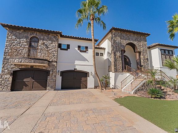 Introducing this exquisite luxury residence boasting 5 beds, 5 baths and spanning 4,300 sq. ft. across 2 stories. This remarkable dwelling features soaring ceilings accented by exposed wood beams making it a true centerpiece of the home. The rich architectural details are highlighted throughout the home with the thoughtfully designed floor plan offering a Tuscan style kitchen with granite counters, tile floors, SS appliances, and stone accents. The primary bedroom highlights a cozy fireplace, two spacious walk-in closets, garden tub, and separate walk-in shower. Each bedroom provides its own private ensuite bathroom for added privacy. Entertainment awaits in the impressive movie theatre & game room with private office space and prepare to be enthralled by the heated infinity pool/spa and the breathtaking panoramic views! Situated on a quiet cul-de-sac next to a peaceful walking area, this home also offers a 3 car garage with double gates and is perfect for both everyday living and grand entertaining!