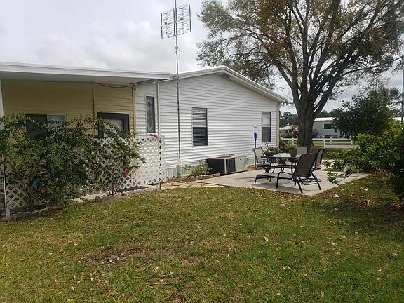 This is a beautiful home with a large layout. The home is furnished and has 2 great size bedrooms, nice size kitchen, huge living room, enclosed side porch overlooking the lake, washer and dryer, storage shed and work room leading to the back porch area to enjoy beautiful Florida evenings. Large, covered driveway, 2 bathrooms, and more! This home has new roof, new siding and paint, central AC, Antenna for the entire house with many channels to choose from for free and all ready to go.
