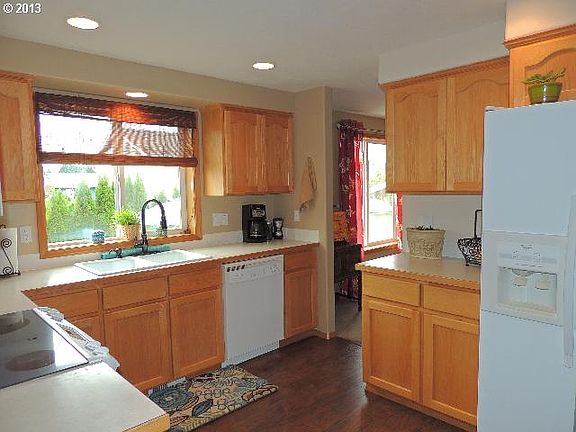 Well kept four bedroom home with fully landscaped yard. Home offers newer A/C a LR/DR and new wood floors in the Kitchen/FR. Kitchen includes refrigerator, oak cabinets and eating bar. Large Laundry includes Bosch front load washer/dryer. Vaulted master has ceiling fan/walk in closet/bath with soak tub and double sinks. Back deck drops down onto concrete patio/yard and shed. Garage has built in shelves.