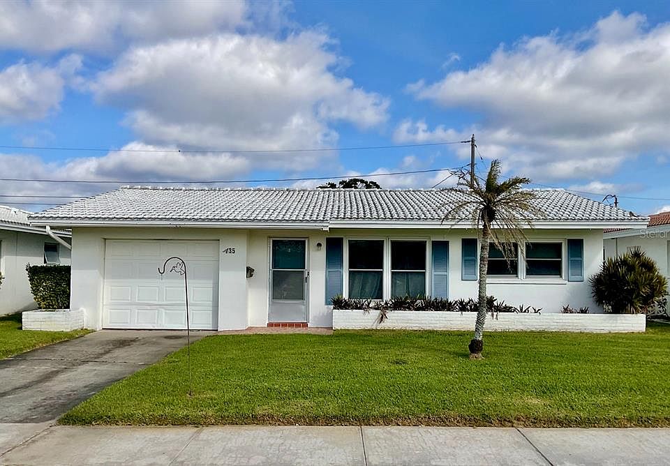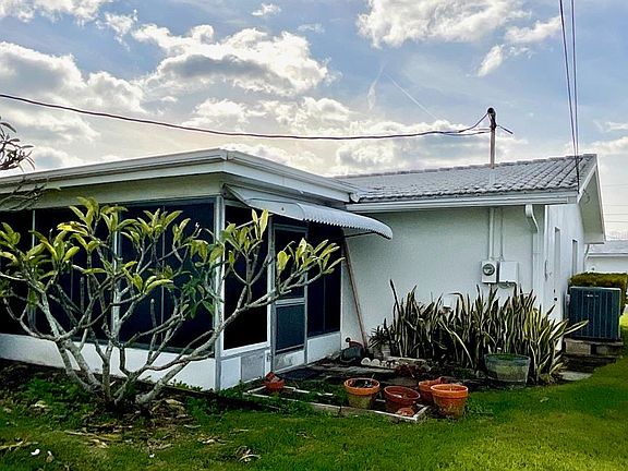 INVESTORS!!! This 2bedroom, 1bath, 1 car garage 848 sq. ft. home needs lots of extra TLC. There are furnishings and misc. effects that go with the home. This property is priced to sell and will need to be cleaned out. The floors throughout are tile. There is a slider and window to the covered, screened Florida room. The A/C works well and is from 2006. The Roof is covered by the maintenance fee. Tile roof was 2020 and flat roof 2017. There are 7 impact windows that were installed in 2007. The single bath is all original and a pale pink. The kitchen cabinets were updated several years ago. Located in the desirable 55+ community of Mainlands, this house is just waiting for someone to update it and make it their own. Call today to schedule your private showing.