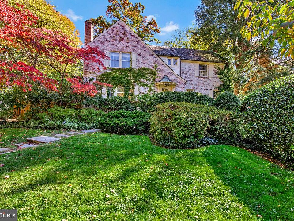 Located on a serene, wooded street in the highly sought-after Spring Valley neighborhood, this classic residence offers a perfect balance of charm, elegance, and comfort, nestled in a natural environment of luxurious landscaping. The main level of the home features an open foyer, a large dining room with a chandelier and bay window, an elegant formal living room boasting a beautiful fireplace, a light drenched sunroom with floor to ceiling windows, a spacious kitchen with exposed beams which leads to a cozy breakfast space with a fireplace and views of the backyard, and a library/den with a fireplace and half bath. The upper level features a primary bedroom with built-in closets, a large ensuite bath, and hardwood floors, plus two additional generous bedrooms with built-ins that share a full bath. The exterior space is just as stunning. The rear yard offers extensive landscaping, multiple patios, and walkways that transport you to your own private oasis.