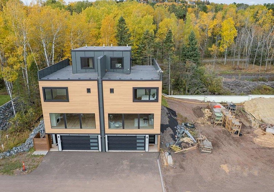 What a superb sprawling townhouse! All fabulous NEW construction! This 4 bedroom 4 bath has it all!! Prepare to be wowed by the main floor living room with cozy fireplace, open concept and stylish kitchen, a formal dining room that overlooks the back yard and lakewalk just beyond! There is a pantry and half bath here too! The floating stairs are a wow and upstairs is a great primary bedroom with pretty attached bath and two more bedrooms share a huge full bath! Climb upstairs to the additional family room with wet bar, wine chiller and bar sink! The bonus here is the view of Lake Superior! You have a huge deck! 32 feet long looking at small views of the lake and back to the wooded area and lake walk! The walk in main floor has a great bedroom and 3/4 bath! The double attached garage is here too along with the mechanical room! So much to offer and so close to either downtown, London road restaurants and coffee shops and gas stations! Walking distance to East Highschool, just blocks away from Lakesides shops, and more! Make life easy, pack a bag and go!