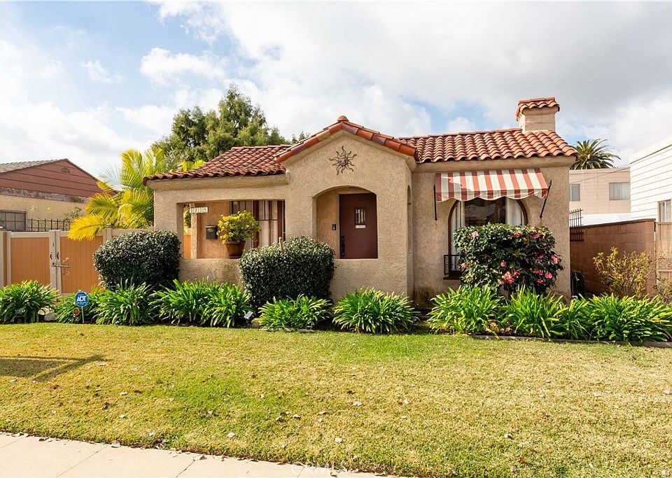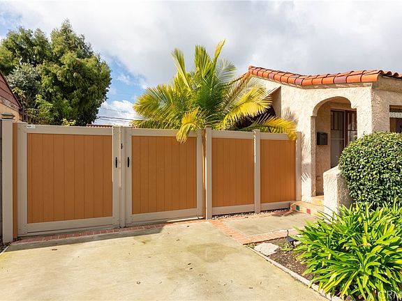 Don’t miss this incredible turnkey Cal Heights Spanish style home with a touch Moroccan Flare. Enter through the original front door into a living room featuring oak plank flooring with walnut inlays that match the walnut trim and picture railing. The room also boasts a barrel ceiling, two large arched picture windows, a faux fireplace and beautifully trimmed windows. Two alcoves bookmark a wonderful archway leading into the dining room. The dining room features the same flooring and trim and is large enough to accommodate a table for eight. The kitchen retains its Spanish appeal while including newer maple shaker cabinets, solid surface counters, terra-cotta floor tiles and the original built-in ironing board. There is also a breakfast area with more cabinets for storage with a butcher block counter that is flanked by a full pantry with pull-out shelves. The large bathroom is highlighted with period appropriate tile and includes a pedestal sink, tub/shower combo, private toilet alcove, and a built-in vanity with mirrors and plenty of drawers. The main bedroom has two large windows, two deep closets, picture railing, a ceiling fan and soothing custom paint. The second bedroom also has a large window, ceiling fan, and picture railing. In addition, it also has a smaller closet and French doors leading to the back deck. The beautifully landscaped backyard offers a wood deck adjacent to a pergola with spa, a flagstone walkway dividing two artificial grass areas, a new veranda-covered patio, and a raised flower bed with an automatic drip system. The oversized 2 car garage has a workbench, drywall, washer/ dryer hookups, and plenty of storage. There are also two automatic garage doors for front and rear access to a paved alley. The home also includes a top-quality vinyl front entry gate, central air cooling and heating system, Pex piping, tankless water heater, solar panels and an upgraded electrical box. Both front and back yards are equipped with automatic sprinklers.