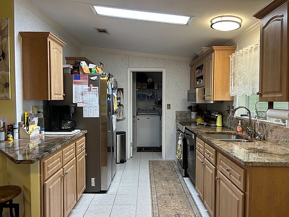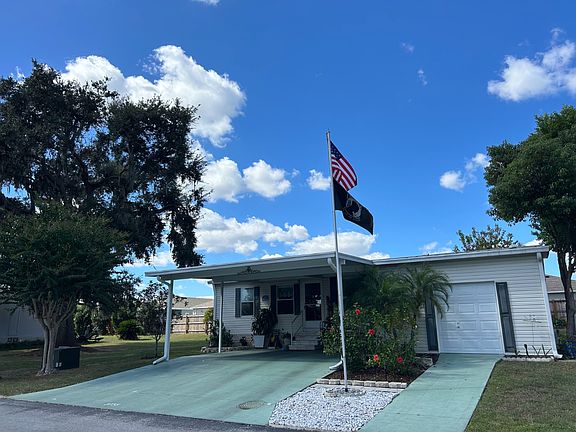 SPACIOUS 3/2 1330 sq ft HOME ON PERIMETER LOT OFFERS INDOOR AND OUTDOOR LIVING WITH MANY UPGRADES! NEW HOME IMPROVEMENTS 2024 INCLUDE: A/C AND WATER HEATER; 2022: LUXURY VINYL PLANK FLOORING, STAINLESS STEEL KITCHEN APPLIANCES, GRANITE COUNTERTOPS, AND SCREENED BACK PATIO; 2021:ROOF AND WATER SOFTENER. Entryway has a glass storm door leading into the kitchen and dining area. Kitchen and dining area are open to living area. Kitchen has ceramic tile flooring, new granite countertops, maple cabinetry, double deep under-mounted stainless steel sink with RO system, stainless steel microwave, five burner glass top stove, side-by-side stainless steel refrigerator with icemaker and water, and window over sink with LED lighting. Off the kitchen is an entryway to the laundry room and garage. Dining area has a window, and lighted ceiling fan. Living area has large windows, lighted ceiling fan, and very large built-in bookshelf and shelving area, with sliding glass doors that lead into the Florida room on the back of the home. Main bedroom has carpet flooring, lighted ceiling fan, and two walk-in closets with built-in cabinets and shelving. En suite bath has vinyl plank flooring, linen closet, and walk-in shower with two seat seats. Main bedroom also has door leading out to the Florida room. Second bedroom has carpet flooring, lighted ceiling fan, and large walk-in closet. Third bedroom/office has built-in reading area with overhead window and lots of cabinets and shelving with lighted ceiling fan and closet. Second bathroom has tile flooring, tub/shower combo, skylight, and raised toilet. Florida room on the back of the house is surrounded by windows. It is very large (9 1/2 x 25) and offers backyard privacy porch sitting. There is also a screened in patio (9 1/2 x 21 1/2) with mold/mildew resistant roll down shades that faces a beautiful garden that includes cacti, two jasmine bushes, tea roses, Key lime tree, and two dwarf orange bushes. Backyard also has an eight foot privacy fence. WHOLE HOME has marbled window sills, lighted ceiling fans, water softener, custom blinds, and window treatments. OUTSIDE OF THE HOME also has beautiful landscaping in front of the home with a flag pole, golf cart garage/shed/workshop, and double carport. GOLF CART with new batteries and charger will be included with the right offer. Some home furnishings may be included with the home including dining room set, sofa, and queen guest bedroom set. Southport Springs is a 55+ land lease ($978.87 a month includes trash, pass through tax, and amenities excluding golf) gated golf club community.Amenities include 18 Hole Golf Course, Pro Shop | Driving Range | Putting Green, Restaurant and Bar, Heated Swimming Pool, Hot Tubs, Clubhouse, Fitness Center, Pickleball, Common Area with Free Wi-Fi, Dances, Card Tables, Shuffleboard, Planned Activities, Horseshoes, Driving Range, Bocce Ball, Pet Friendly, Library, Banquet Hall, Activity Center, Billiards, and Lighted Tennis Courts. CONTACT LISTING AGENT ONLY FOR MORE INFO OR TO SCHEDULE A SHOWING. Financing options may be available.