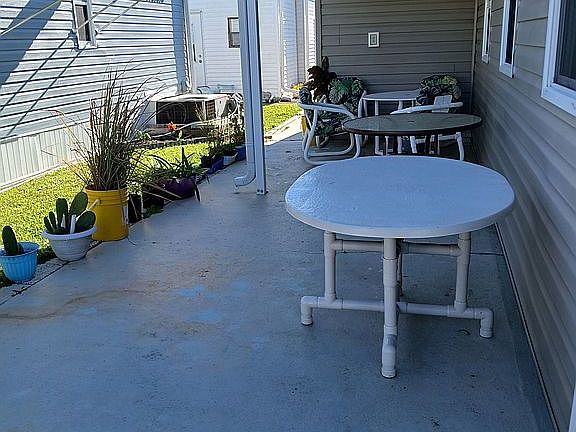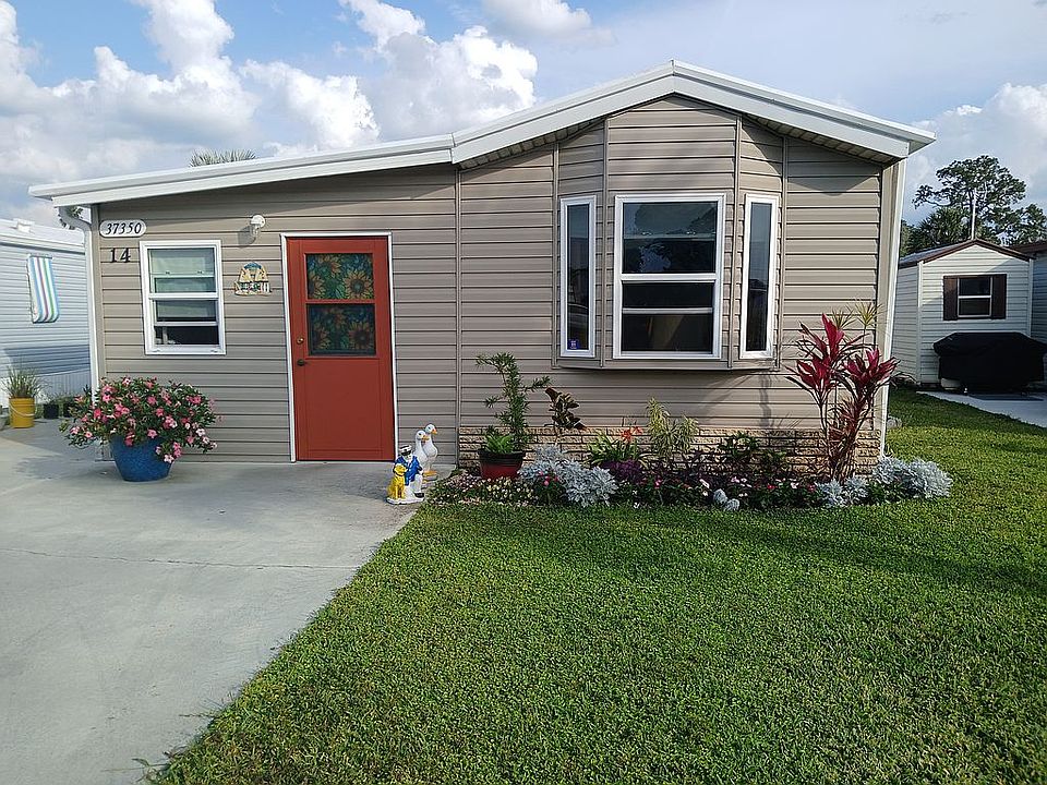 2025 The entranceway is beautifully landscaped. Covered patio to sit comfortably in the shade from the sun, outdoor table with 4 chairs and comfortable and plush seat and back pillows. This self-contained 736 sq ft living space, located in 55+ community in Avon Park, is a well maintained 1 bed,1 bath park model, very comfortable, has everything you need and more. Great location, close to all amenities within walking distance.