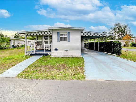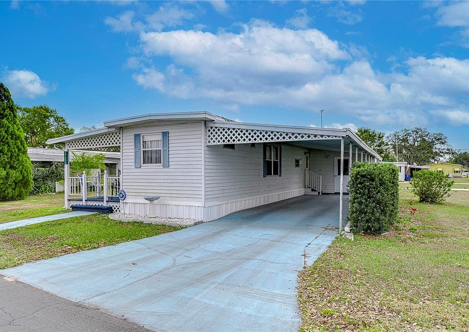 Beautiful corner lot near the clubhouse in this 55+ park. The home has an addition on the side of the living room and primary bedroom to the singlewide home. Entering from the front covered porch into the living room, the open floor plan allows the view of the kitchen and dining room The kitchen has a breakfast bar with a seating area. The guest bedroom is at the front of the home and has a half bath ensuite. There are two built in closets and a built-in dresser. As you go down the hallway toward the rear of the home there is a side door entrance from the carport. Next is hall bath with a tub with shower. The primary bedroom across the hall has 2 built in closets and a rear door to the outside. The back bedroom is smaller and makes a great office or craft room. Don't let this one get away. Call now for an appointment to see it.