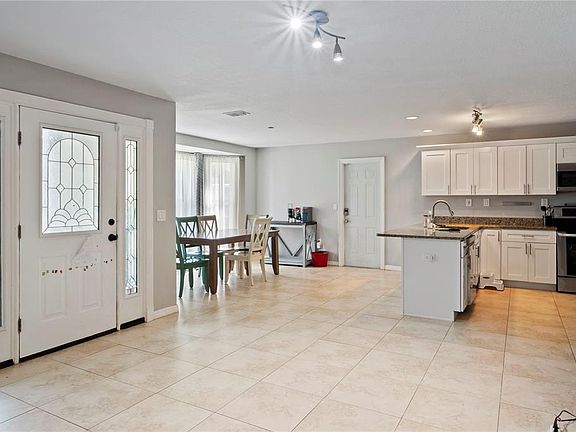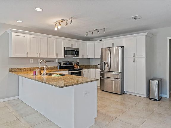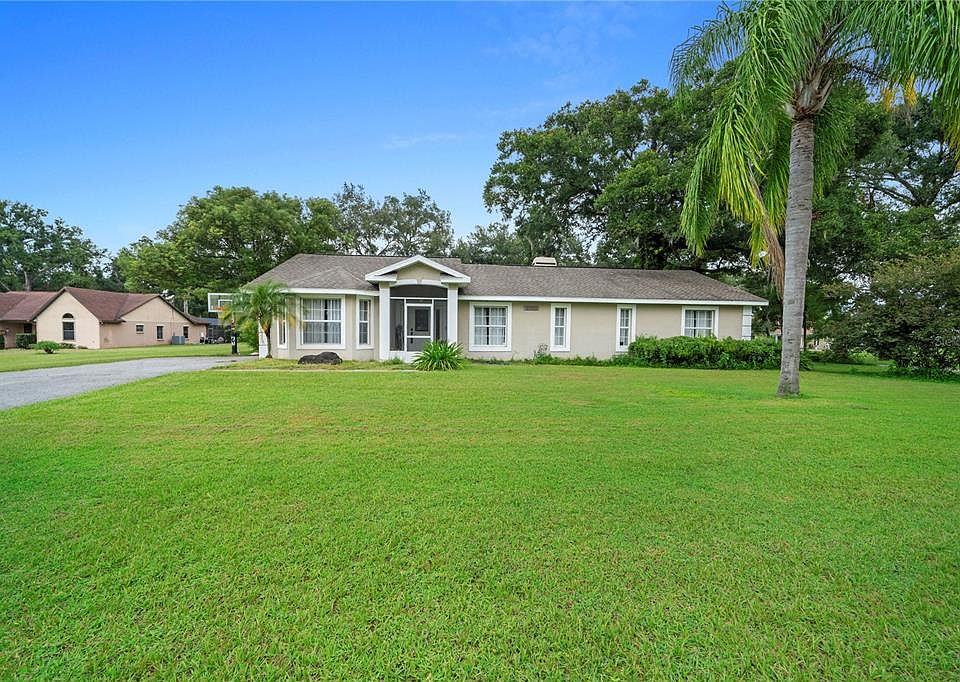 Short Sale. BANK APPROVED PRICE! Nestled on a generous 1.2 acre canvas lies a custom-built sanctuary that harmonizes space, grace, and possibility. At approximately 3,488 sq ft, this single-story home (built in 2000) offers both elegance and practicality. A screened front alcove welcomes you inside, where a sunlit family room unfolds, boasting tray or coffered ceilings, a cozy fireplace, and sweeping 24-inch ceramic tile flooring that glides through the communal spaces. The heart of the home—the kitchen—is artfully updated with granite countertops, stainless-steel appliances, crown molding, and contemporary lighting. It connects seamlessly to a breakfast nook framed by a bay window, a formal dining zone, and an endearing coffee bar illuminated by natural light. Designed for the rhythms of a modern multi-generational family, the home features 5–6 bedrooms across three distinct living wings. On one side, four secondary bedrooms are paired through Jack-and-Jill bathrooms. On the opposite side lies a serene master retreat, your private haven with a luxurious bathroom outfitted with a dual-nozzle shower, a separate soaking tub, dual vanities, and high-end finishes that evoke a spa-like serenity. Perhaps this home’s most versatile asset is the in-law (or guest) suite—a self-contained haven complete with a private entrance, kitchenette, full bath, and flexible living space. Ideal as a studio, home office, guest quarters, or income-generating rental. Step outside to explore nearly half an acre of possibilities—a screened patio leads to an open-air patio ripe for BBQs and lounging.