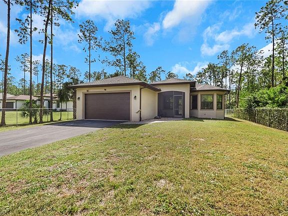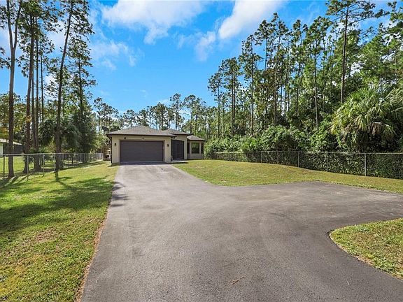 Your private Naples retreat awaits at 3736 10th Ave SE! Nestled on 1.14 acres of lush, wooded tranquility, this charming and beautifully maintained 3-bedroom, 2-bath home blends modern comfort with the serenity of Golden Gate Estates living. A fully fenced property with a gated entrance offers privacy and peace of mind, while the long paved driveway leads to a picture-perfect residence surrounded by soaring pines and nature’s calm. Step inside and be greeted by soaring volume ceilings, an airy open-concept layout, and elegant tile flooring throughout. The chef-inspired kitchen boasts rich wood cabinetry, granite countertops, stainless steel appliances, and pendant lighting over a large breakfast island—ideal for both casual mornings and entertaining guests. The bright living area exudes warmth and flow, complemented by designer touches and a seamless connection to the outdoors. Retreat to the spacious primary suite, featuring a serene view of the surrounding landscape and an ensuite bath with a walk-in glass shower and dual-sink granite vanity. Two guest bedrooms provide comfort and versatility—perfect for family, a home office, or visiting guests. Outside, the possibilities are endless. Enjoy Florida sunshine on the open patio, host weekend gatherings, or design your dream backyard oasis—there’s ample space to add a pool, garden, or workshop. With over an acre of land, you’ll experience the best of both worlds: peaceful estate living just minutes from Naples’ premier shopping, dining, and resort destinations. Whether you’re looking for a family home, winter getaway, or future investment opportunity, this property offers the freedom and potential to make your Florida dreams come true. Discover the balance of elegance, comfort, and privacy—right here in Golden Gate Estates.