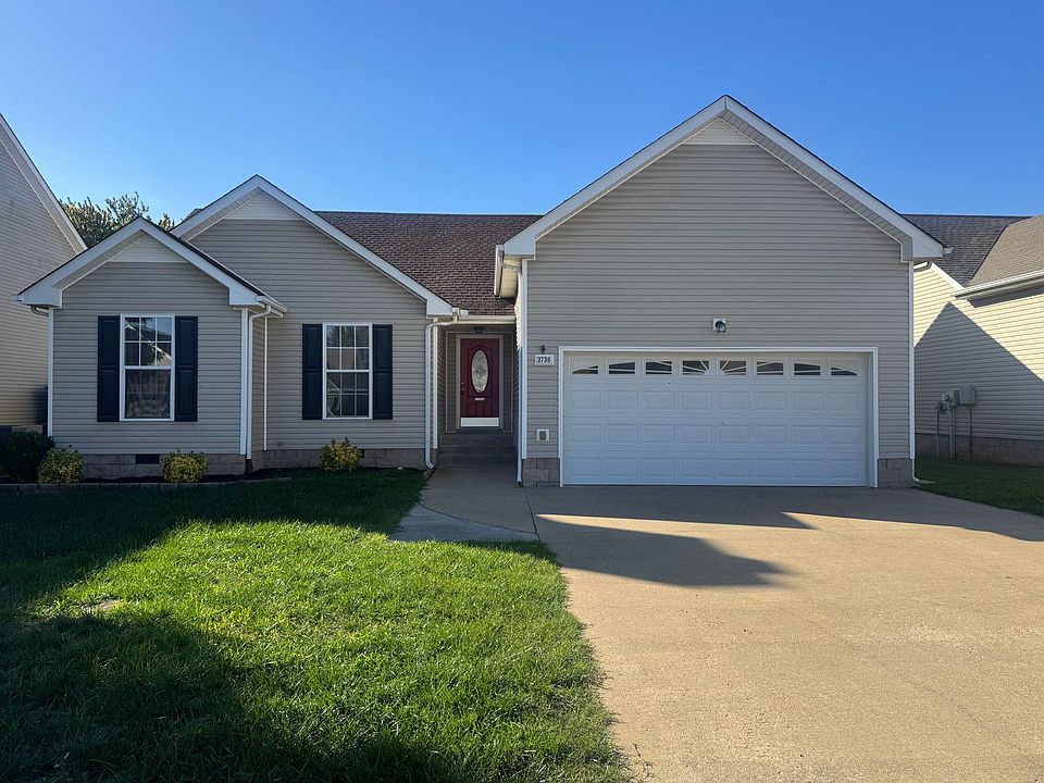 Welcome to 3736 Cindy Jo N Drive! Discover the perfect combination of comfort, convenience, and style in this beautifully maintained 3-bedroom, 2-bathroom home. Featuring spacious living areas and a great location, this property is a true Clarksville gem you won't want to miss! Step inside to an inviting open-concept living space, ideal for entertaining guests or enjoying a quiet evening at home. The eat-in kitchen boasts stainless steel appliances, ample counter space, and plenty of cabinetry, making meal prep both easy and enjoyable. Retreat to the primary suite, complete with elegant tray ceilings, a private en-suite bathroom, and a generous walk-in closet, offering the comfort and privacy you deserve. Outside, the backyard provides room to relax and play, plus a large storage shed for your convenience. Located close to schools, parks, shopping, and all that Clarksville has to offer, this home truly checks every box. $1575 per month for an 18-month lease and $1595 per month for a 12-month lease. Home is pet friendly, one pet only. Pet Deposit and breed restrictions apply. Call today to schedule your tour today.