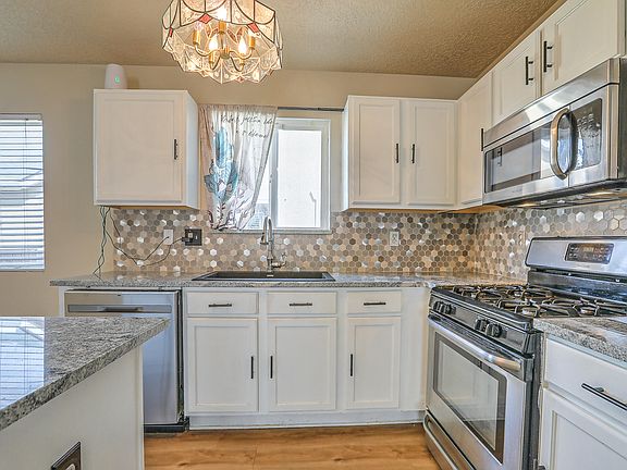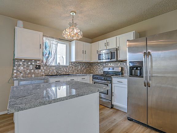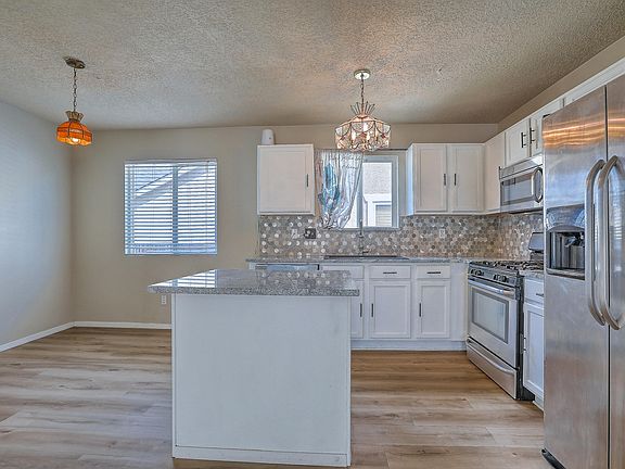 Nicely Updated Single Story with Refrigerated Air paid for by PV Solar, Views, & Backs to Open Space! This Home Totally Rocks the $220+/sq ft Comps, especially with PV Solar Included! Sweet, Open Floor Plan with 3 Bedrooms plus a Study or 4 Beds with an Easy Conversion. Recent Remodel with New Kitchen & Baths, Granite/ Quartz Counters, Dishwasher, Washer & Dryer, & Vinyl Wood Flooring. Step outside to a Freshly Landscaped, Easy Care Back Yard with Spacious Patio & Panoramic Views of Mountains & Expansive New Mexico Skies! Home Includes 5.76 kW PV Solar System installed Oct 2023 with Transferable Warranties. HOA covers Front Landscaping Maintenance. Community has Five Parks & Lots of Sidewalks & Trails! An Elementary School is conveniently A Mile Away. All Appliances Convey. Come Get It!