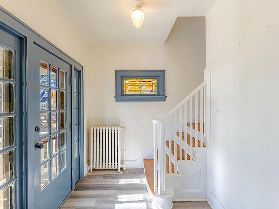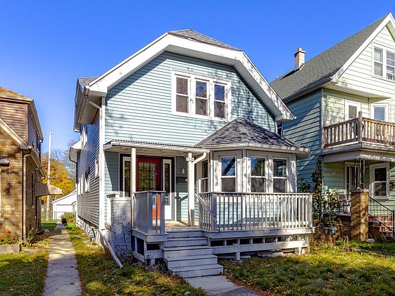 Spacious and beautifully updated 5-bedroom, 2-bath single-family home with timeless charm and modern comfort! Step inside to find a welcoming living room featuring stunning stained glass windows and a bright sunroom perfect for relaxing. The formal dining room boasts classic built-ins that add character and functionality, while the updated kitchen offers a center island and plenty of workspace for the home chef. Enjoy access to a private balcony and a rear sun porch overlooking the fenced backyard, ideal for entertaining or unwinding. A 2-car detached garage provides ample parking and storage. With newer updates throughout, this home has vintage details while offering contemporary living in one inviting package! Some photos have been virtually staged.