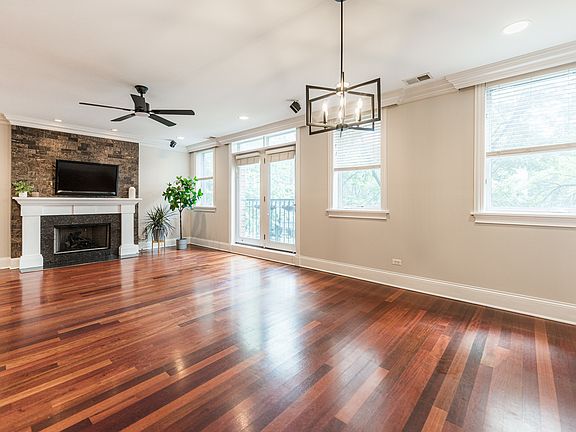 Spacious All-Brick Condo in Prime East Lakeview Location! Welcome to this stunning 1600+ sq ft home in an intimate 4-unit building set on an extra-wide 30 ft lot. This move-in ready condo features an open-concept layout with a sunlit living room, dining area, and kitchen - complete with Juliet balcony windows and a cozy fireplace. Enjoy the ideal split-bedroom floor plan with two generously sized bedrooms and two full bathrooms. The luxurious primary suite boasts a walk-in closet and spa-inspired bath with a whirlpool tub, steam shower, and double vanity. Hardwood floors run throughout, and the unit also includes a side-by-side laundry room, spacious deck, storage and tandem exterior parking included! The open layout is perfect for entertaining-featuring a chef's kitchen with Viking stove, Sub-Zero refrigerator, granite counters, stainless appliances, and breakfast bar. Tucked away on a quiet one-way street just two blocks from iconic Wrigley Field, and a short walk to the lakefront, shops, dining, and nightlife. Easy access to the Clark Street bus and Red Line at Addison makes commuting a breeze. A rare combination of space, style, and unbeatable location - don't miss this East Lakeview gem!