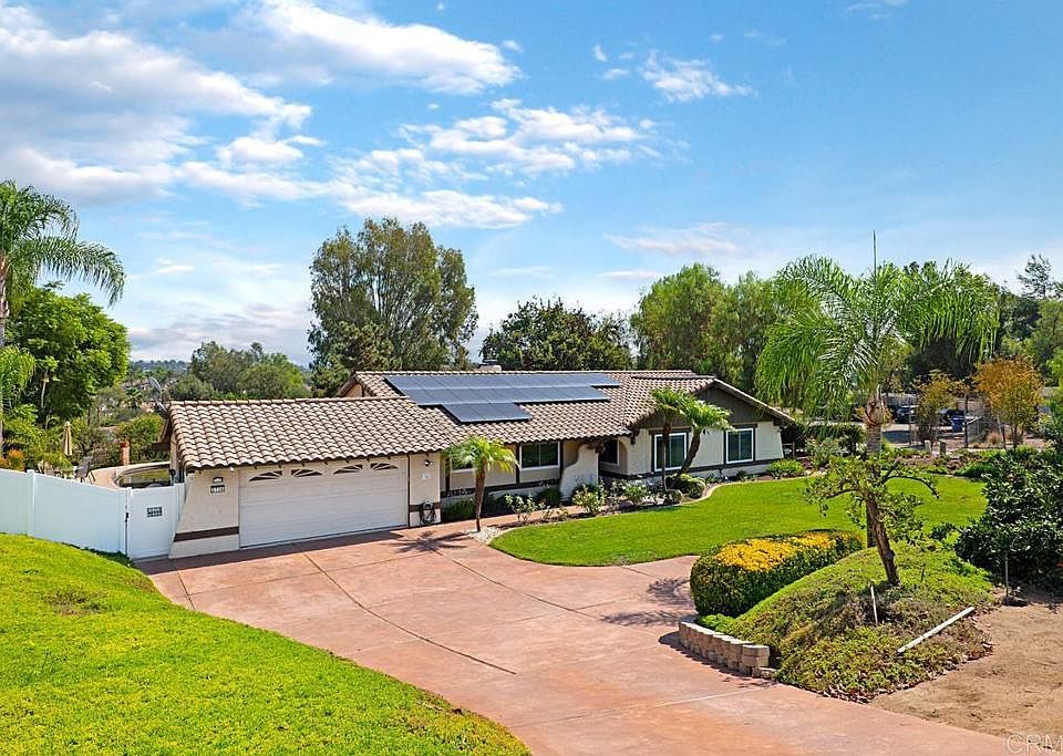 Price Reduction. Live the Fallbrook lifestyle! Beautiful and private single level home in the country surrounded by dozens of fruit trees with eastern views to the mountains. Over an acre of land with multiple access points offers many possibilities including horse property, RV/boat accommodations, or the potential for an ADU. Sparkling pool and large covered patio make this a perfect home to entertain in or just relax and enjoy rain or shine. With energy costs on the rise, the paid for solar system and dual pane windows are a great cost saving benefit. This peaceful and rural property feels miles away, yet is just minutes from all the great shopping, dining, and schools that the town of Fallbrook has to offer. A wonderful place to call home.