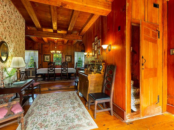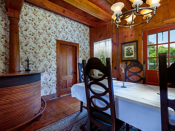 Step back in time with this enchanting 4-bedroom, 3-bath home built in 1826 and rich with history. Once the renowned David Johnson Brick Store, this property was a central hub for villagers in the 1800s. Nestled at the edge of town on a level .46-acre lot, this home seamlessly blends historic charm with modern amenities. Inside, you'll be captivated by the wide plank flooring, hand-hewn beam ceilings, and rustic hardware that preserve the home's heritage. Cozy up by one of the three fireplaces or explore the library, which features a hidden vault room—a nod to its storied past. The spacious dining room is perfect for gatherings, creating a warm and inviting atmosphere. Additional features include a two-car garage and a back deck where you can sit and enjoy your morning coffee. This home is not just a place to live, but a piece of history to cherish. Embrace the unique character and timeless appeal of this remarkable property.