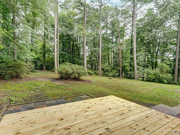 Beautiful Mid-Century Modern Style home in Traylor Estates. 2/3 Acre and a short walk to the James River. Bright & Airy floor plan, newly refinished hardwood floors, freshly painted interior. Nicely renovated kitchen with granite tops, open design to dining room, sliding doors to new deck. brick fireplace in living room and family room. 3 spacious bedrooms and 2 full baths, plus powder room on first floor. One car garage with shelving.