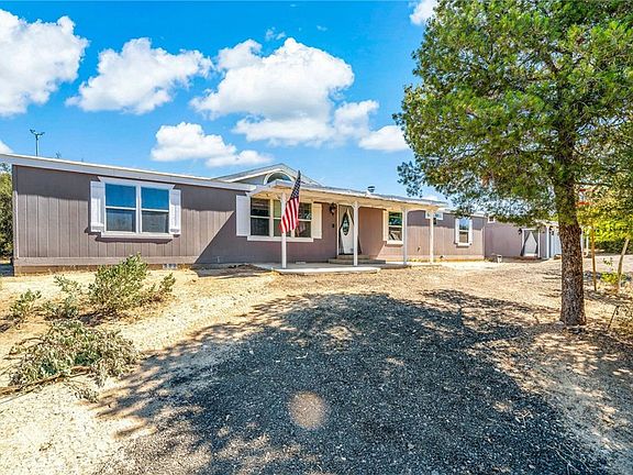 Spacious Country Living with Modern Comforts on 5 Usable Acres. Discover the perfect blend of space, rural charm and modern technological touches with this 4-bedroom, 2-bathroom, 1,782 sq ft single-story manufactured home on a permanent foundation. Set on 5 flat, fully usable acres with RV hookups, mature landscaping, this property offers endless opportunities—enjoy walking or riding trails, a small shooting range setup, peaceful camping spots, evening stargazing, or romantic solar lit walks. The black gravel circular driveway allows easy vehicle access and helps control water erosion and leads to a detached 2-car garage, wood storage shed, and large metal storage container for ample storage. The newer garage is insulated w workshop layout & EV/welding ready 220V service. The fenced backyard is perfect for pets, featuring a separate dog kennel area or “catio” for your feline friends. Inside, fresh interior paint and durable vinyl flooring create a move-in ready appeal w fiber optic internet, smart appliances and Ring security. The open floor plan boasts a large kitchen with a center island, black appliances and breakfast area flowing seamlessly into the family room, complete with a cozy fireplace, built-in desk, and ceiling fan. A versatile bonus/exercise room with a closet could serve as a 5th bedroom. Spacious secondary bedrooms each feature a custom color-changing ceiling fan/light fixture with dimmer, and share a well-appointed hall bath with a tub/shower combo. The primary suite offers vaulted ceilings, abundant natural light, a walk-in closet, and a private bathroom with separate tub and shower plus tiled flooring. Located on a gentle rise overlooking the valley, this home offers evening city-light views and is just a short walk from local schools. Too many upgrades to list...check out the complete inventory of repairs and renovations on the 'supplement' page. Whether you’re seeking space for hobbies, animals, or simply room to breathe, this property delivers.