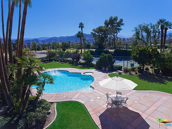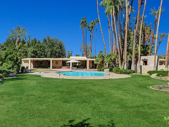 Rare opportunity to own an architecturally significant mid-century home sited on a massive private estate. Over an acre of manicured gardens, tennis court, large concentric circular pool and spa with panoramic views of the mountains from the middle of a Tamarisk Country Club Golf Course. One of only 23 homes within the gates of Tamarisk CC, yet no HOA fees! Built by Marval Construction and appearing within the pages of the Fall 1962 edition of Architectural Digest. Listed in Rancho Mirage's Historic Resources Survey. The large "U" shaped floorplan separates two matching wings, each with its own master bedroom and guest suite. Both master bathrooms retain their original carrara slab marble showers, tub surrounds and custom built-in cabinetry. Walls of glass in the living room beautifully frame the view of the gardens, pool and tennis facilities. A generous circular bar uniquely blends interior spaces with outdoor living, simply amazing. Truly a special property.