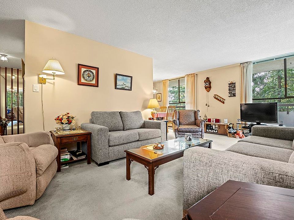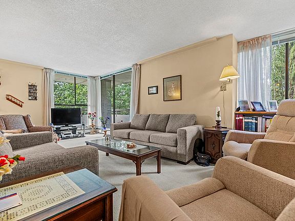 Welcome to Bartlett Court! This bright and spacious SW-facing corner unit offers an impressive extra large 1,110 sqft of comfortable living. Featuring 2 large bdrms, 1.5 baths, & an open layout, the home is filled with natural light throughout the day. Step outside to enjoy two oversized wrap-around balconies, perfect for outdoor dining, entertaining, or simply relaxing in the sun. As a resident, you’ll enjoy access to fantastic amenities including an indoor swimming pool, hot tub, sauna, fully equipped exercise centre, plus a club house w/pool table, games rm, and a library to unwind. Maint fee incl. water, heat, electricity for added value. Steps to Lougheed Town Centre, SkyTrain, shops, schools & parks – space, sunlight & convenience all in one!