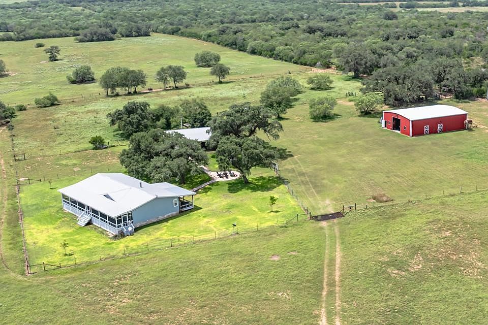 Escape to the beauty of the Whispering Oaks Ranch and discover the wonderful views & lovely home with a large 40X60 metal barn. This 90-acre ranch is divided into 3, 30-acre tracts. Which are cross fenced (recently built) allowing for rotational range management. The front 2, 30-acre tracts are planted with coastal bermuda. The stock tank is located in front of the house & offers great dove hunting. The back 30-acre tract is mostly brush w/beautiful oak trees & 2 deer blinds great hunting. The property features an outstanding Titan modular home, w/hardie board siding w/a screened in porch across the front, covered back porch, & rock patio w/fire pit. The home comes furnished. The beautiful island kitchen has stainless appliances. You will not want to leave the large front porch with its magnificent views of the countryside. The carport next to the house features an RV hookup. The 40X60 metal barn has 2 overhead doors. There is a nice set of cattle pens located near a large mott of oak trees. There are 2 working water wells. One water well supplies 3 water troughs, & the other water well supplies the house w/water softener. There is a sprinkler system around the home. The electric power is buried from a pole behind the barn to the house. The rainwater collected from the barn is connected through a system of gutters and pipes that direct the water into the stock tank. This provides the stock tank with water year-round. The front entrance is equipped w/a solar-powered automatic gate. You will have to look long and hard to find another hidden gem like this. The ranch contains brush, native grass, & wildlife indigenous to South Texas: white-tail deer, turkey, javelinas, quail, dove, and hogs. Implements & other equipment that convey with sale of property include a Kawasaki mule, Kubota tractor, 2 flatbed trailers, spray rig, crosscut disc, shredder, & cattle head shoo