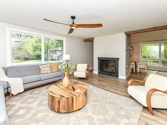 Experience the perfect balance of style, comfort, and privacy in this fully renovated 3 bedroom, 2.5 bath Mid-Century Modern home on over an acre in Washington Township. Completely remodeled in 2025, every detail was thoughtfully chosen to blend timeless architecture with modern luxury. Expansive windows and skylights flood the home with natural light, highlighting an open floor plan anchored by a striking stone fireplace and connecting seamlessly to the dining area and gourmet kitchen. Designed for both everyday living and entertaining, the kitchen is a chef's dream with quartz countertops, custom cabinetry, Cafe dishwasher and microwave, Mercury refrigerator, and a commercial-grade Hestan gas range with dual ovens, griddle, and pot filler. Gather with friends around the oversized island, enjoy morning coffee in the screened-in porch, or host summer evenings on the spacious deck surrounded by mature trees. Indulge in the private cedar sauna for the ultimate in relaxation. The dedicated home office offers a quiet space for productivity. The walk-out lower-level expands your living space with a rec room and mudroom/laundry, and access to the backyard. Recent updates include a new roof, HVAC system, skylights, flooring, light fixtures to name just a few, giving you peace of mind and a true move-in ready lifestyle. The detached garage offers storage and the potential to finish a second level for in-law quarters or a studio, making this property as flexible as it is beautiful. With high-end finishes throughout and over an acre of wooded serenity, this rare offering is more than a home, it's a lifestyle. Imagine mornings filled with natural light, evenings by the fire, and weekends entertaining in a space that reflects both sophistication and warmth. Located just minutes away from shopping and dining it is in an ideal location. Don't miss your chance to own this exceptional property.