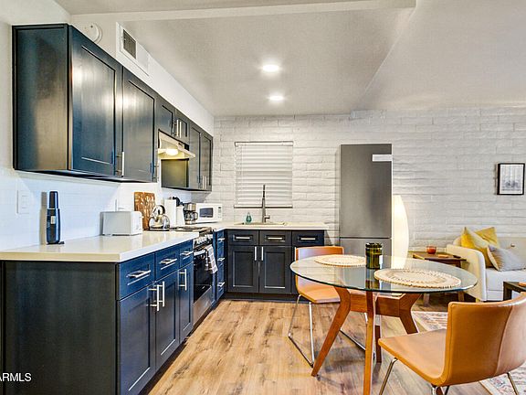 Lifestyle is included with this Light & Bright Fully Remodeled 1 Bedroom, 1 Bathroom, Condominium located right in between Arcadia and the Biltmore. This brand new Kitchen includes Stainless Appliances, Navy Blue Cabinetry, Quartz Counters, & all new LVP Flooring. The newly designed bathroom features a deep soaking tub. This Mid-Century complex offers beautiful grounds and Community Pool & Laundry. All the amenities necessary for your winter visit to feel at home for Work, Play, Relax, & enjoy everything AZ has to offer inc. Spring Training, Barrett Jackson, Waste Management Phoenix Open, Arabian Horse Show, THE SUPER BOWL 2023! Close to restaurants, shopping, nightlife, Old Town Scottsdale. WiFi Streaming Smart TV & Utilities included. Location, Location, Location.