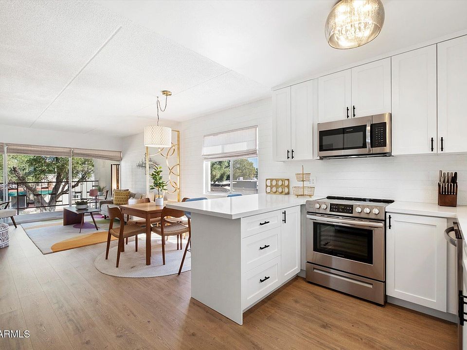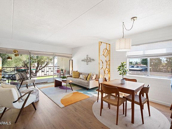 Uncover the hidden allure of this Mid-Century Gem in Arcadia Lite! Tucked away in a prime corner spot, this stylish end-unit offers rare privacy with serene views of lush trees and a sparkling pool from your oversized, shaded balcony. The sleek remodel blends retro charm with modern touches, creating a bright, open-concept space that feels effortlessly inviting. Imagine strolling to LGO, Postino, and Ingo's just minutes away, then returning to your tranquil oasis. Whether you're seeking a second getaway or smart investment this property has the perfect location!