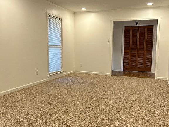 Inviting Living Spaces: Multiple living rooms with plush carpet, recessed lighting, and neutral tones create a relaxing atmosphere. Built-in shelving and French doors add character to the space.