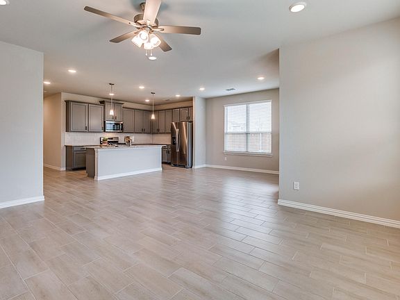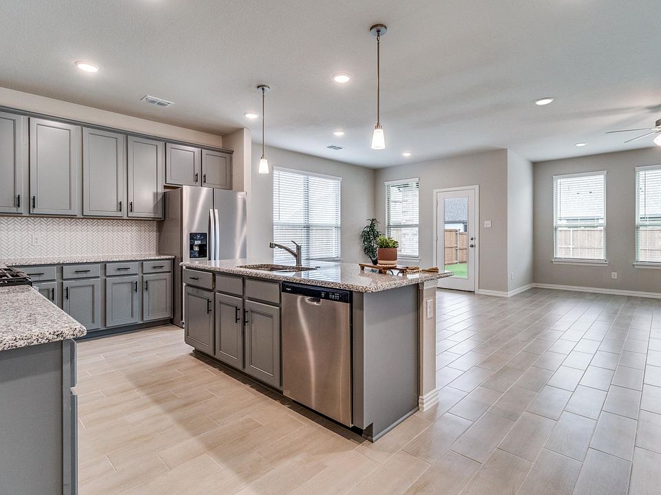 2 year old construction in the master planned community of Bel Air! Beautiful large eat in kitchen featuring stylish shaker cabinets, kitchen island, walk-in pantry, including a new SS fridge. Also included is a new washer and dryer in your spacious laundry room. Wood like tile throughout all living spaces and baths. The large primary suite includes a state of the art bathroom with dual vanities large garden tub, spacious shower, and TWO walk in closets! Don't miss the large backyard with covered patio giving ample utility for all. With this boutique neighborhood offering exciting amenities including an event lawn, outdoor workout space and dog park, all while conveniently located off US 75, this home is a home run! Fridge, washer and dryer!