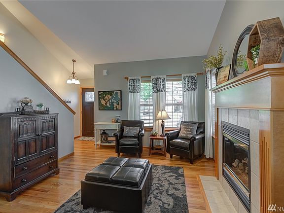 Great home that is within walking distance to 2 schools! This well maintained 1,684 sq ft home has 3 bedrooms and 2.5 bathrooms. The living room is open with vaulted ceilings and cozy gas fireplace. The large bonus room upstairs adds great additional space to the home. The master bedroom with private bath is located on the main level. This beautifully landscaped yard is fully-fenced with a new deck, storage shed, gardening space and small pond. The perfect space for warm summer evenings!