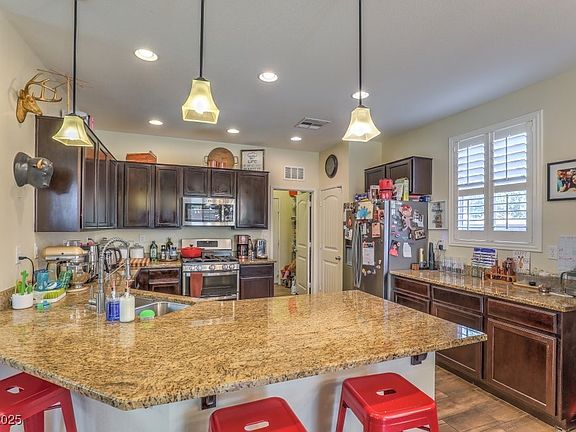 Welcome to high-end living in this guard-gated Henderson community, just minutes from the Raiders practice facility! This stunning home is one of the largest models in the neighborhood, perfectly situated on a premium corner lot; also one of the biggest in the community. Inside, enjoy an open and inviting layout with modern wood-tile flooring, custom shutters throughout, and high ceilings that fill the space with natural light. The kitchen features quartz countertops, stainless steel appliances, and a butler’s pantry ideal for prep and entertaining. The primary suite features glass block windows that provide privacy, allow natural light, and help resist moisture (the more you know), along with a relaxing bathtub, separate shower, and walk-in closet. Two more bedrooms provide versatility for guests or a home office. Outside, the private, low-maintenance yard is perfect for relaxing or hosting. So come visit this amazing home in a prime Henderson location! WELCOME HOME!