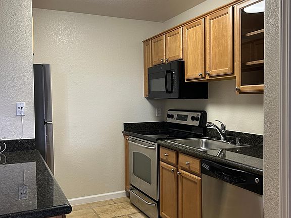 This is a nice studio condo on the first floor, ~ 420 square feet. Privately-owned unit conveniently located off of Sequoia Rd. and Paseo Padre Pkwy. Close to Fremont train station and easy commute to the 880 and Dumbarton Bridge. Features include: - kitchen with granite countertops / electric stove, microwave, dishwasher, & fridge, all stainless steel appliances - luxury vinyl plank flooring in main living area - bathroom with granite countertop - enclosed private patio with private storage closet - assigned parking spot at no additional cost - community laundry facility - community pool / workout facility - water, garbage and sewer included Available now. 1-year lease term. No smoking in unit, no pets. No responsible for typographical errors.