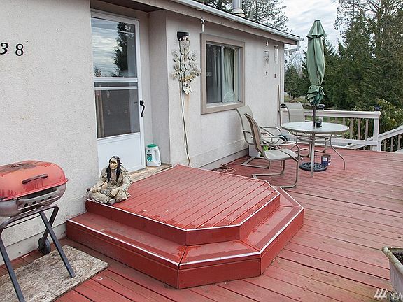 Grab your morning coffee and head out to your large south facing deck and enjoy the bay view. This lovely 2 bedroom home has an enclosed back porch and a fully fenced front yard. It has a functional layout with a cozy wood stove to keep you warm. Plenty of room for parking a boat or RV. Sandy Point amenities include pool, clubhouse, 9-hole golf course, playground, marina, boat launch, tennis court. Fee simple land. 10 minutes from I-5.