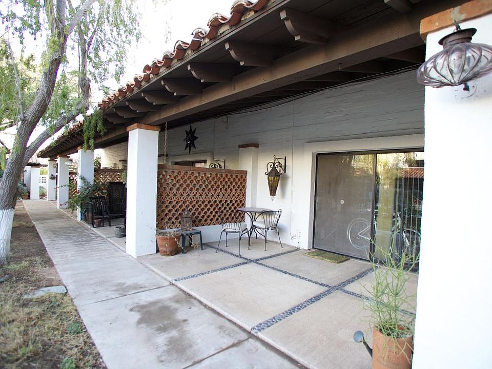 Adorable 2 story, 2 bedroom, 1 1/2 baths, loaded with character & charm in unique condo complex in midtown. Beehive gas fireplace, pergo floors upstairs, concrete floors on main floor, central a/c, pool, washer /dryer, large patio in a quiet garden setting are some of the features of this property. One block from 3rd Street bike route. Owners live in the neighborhood and are very responsive.