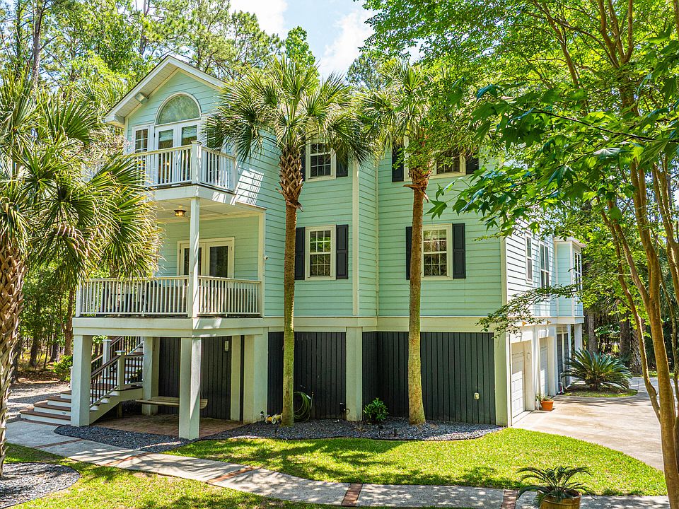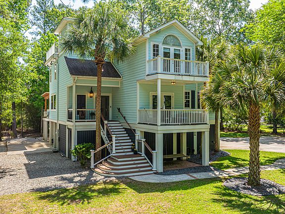 Beautiful home with extensive custom features and upgrades. Light, bright and inviting throughout. An exceptional home with a fabulous floorplan in the sought after community of Darrell Creek. Great for entertaining and for every aspect of your life. Space for everyone with a large open concept main floor, playroom/den, loft office space, five spacious bedrooms, three full baths and an additional flex room downstairs. So much to offer! You'll first experience the welcoming front porch that opens the way to this impressive home. Entering the wide entrance foyer you step into the expansive main floor that has a wonderful flow, connecting the great room, den/playroom to the fabulous kitchen and dining space. All overlooking the amazing back yard spaces through a wall of windows.A gas fireplace with marble surround accents the great room. The playroom/den has an entire wall of built in shelves and cabinets with a Calacatta quartz countertop. Designer color palette, lighting fixtures and ceiling fans throughout. The chef's kitchen showcases bright white cabinets with a glass front accent cabinet, tall pantry cabinets, soft close cabinet doors and pull-out shelving, abundant Calacatta quartz countertops and an oversize countertop extension with seating space. Stainless appliances; the refrigerator and dishwasher are less than one year old. You'll also enjoy the cooktop with downdraft venting, the double bowl sink with high-end pull down faucet and designer tile backsplash. The spacious primary bedroom is upstairs and has a lovely tray ceiling with recessed lighting, an ensuite bath with frameless glass shower, free standing soaking tub, and dual sinks. There also is a large walk-in closet with custom shelving and organization. Also upstairs are three large guest bed rooms, one with an attractive private porch. The fifth bedroom is on the main level with wainscoting, also with its own private porch. All bedrooms have generous closets. The full hall bath upstairs has cheerful bright tile, a shower/tub and double pedestal sinks. Glowing wood floors upstairs and down with plush carpet in the bedrooms. A handsome bonus room on the lower level provides even more room to spread out. You'll also appreciate the additional workshop space on the lower level adjacent to the garage. There is an impressive amount of storage space throughout the home. The amazing outdoor spaces are perfect for entertaining. An expansive 31' x 14' Brazilian Walnut (IPE) deck is just off the great room and den/playroom. A covered pergola expands over an outdoor kitchen and bar area at the deck. The outdoor kitchen includes a mini fridge, built in counter top burner and a large 5 burner stainless steel griddle/grill. The deck and outdoor kitchen overlook the back yard patio and fire pit areas. On the top level, a rooftop aluminum deck and railing system provides long term low maintenance and a beautiful vantage point for stargazing. The impressive new front entrance steps, railings and porch are crafted of Timber Tech Advanced PVC for future low maintenance. Steps and post caps include beautiful lighting. A large two car garage is finished with epoxy floors. Under the deck is additional covered parking for multiple and oversized vehicles and additional storage space. There is an RV/Boat concrete pad with two 30A power outlets. For energy efficiency and resilience, there is attic spray foam insulation and a generator-ready subpanel with plug. There are two HVAC systems. The new system is a high efficiency system with coastal coating. The pool at Darrell Creek is a favorite spot for residents. Nearby are popular Charleston County schools. You're close to Charleston, the beaches, shopping, services and the airport. This is the home for you!
