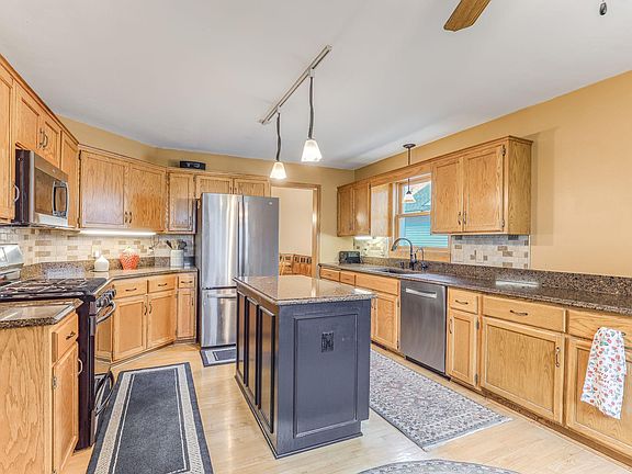 Spacious 4 bedroom, 4 bath walkout two story in terrific location. Backs up to Victoria Park, privacy in your backyard. Beautiful garden areas and patio. Large kitchen plenty of room for workspace and cabinet storage with informal dining space. Separate formal dining room opens to the living room with vaulted ceiling and gas fireplace. Four season porch for extra room for the family and to enjoy your morning coffee. Main level primary bedroom and full bath, main level laundry and guest bath. 2nd floor has two bedrooms and a full bath. Three car attached garage heated and insulated. Walkout lower level with a huge family room with gas fireplace. 4th bedroom down, office and room for storage. Updated roof and maintenance free exterior. This home will be a great place for your family.