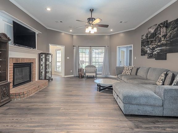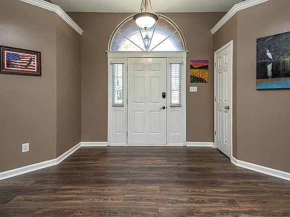 Wonderful home with so many upgrades and updates. New primary bath with separate tub and stunning large shower. Double vanity with dramatic granite counters and custom closet with hanging space and drawers. Primary bedroom is huge with 2 closets. Updated kitchen with new island, counter tops and appliances. New luxury vinyl plank flooring throughout. No carpet in the house at all. Inviting covered patio across the back of the house, looks out onto private fenced yard. Patio extension Has been added along with french drains. Large storage building and green house! Roof is 5 years old and gutters have recently been replaced. Attractive split floor plan. All bedrooms have walk in closets. Immediate possession. Lovely home!